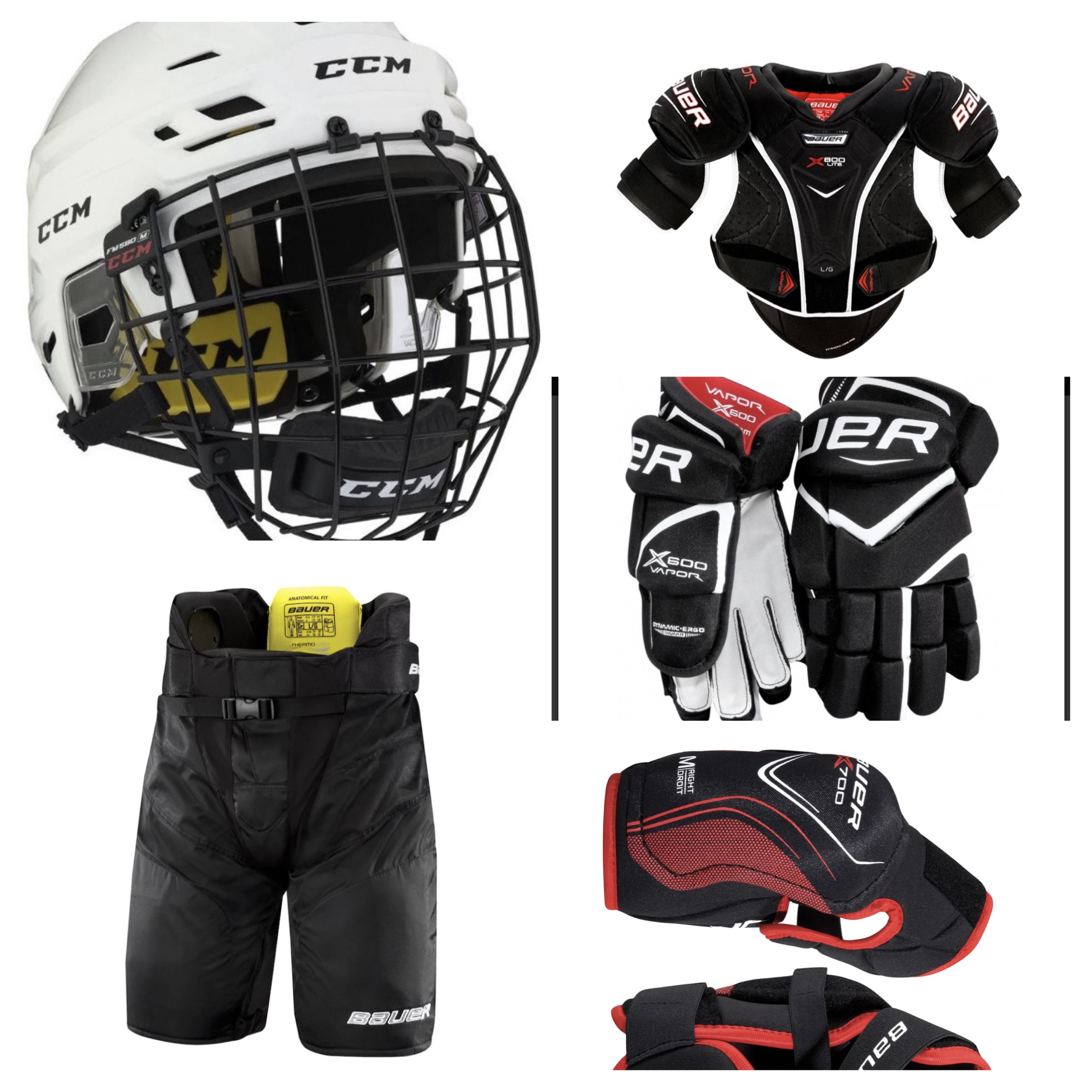 Prodám části hokejové výstroje, která je téměř nepoužitá. Prodám jako komplet nebo po částech.